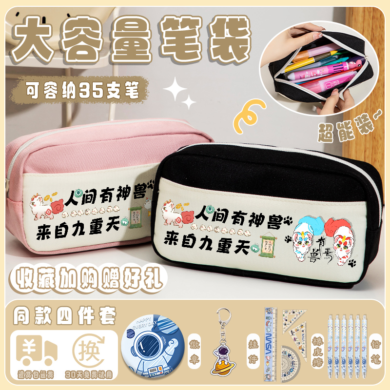 新款有兽焉卡通男女孩中小学生专用笔袋一到六年级男孩简约搞怪便携大容量多功能双层收纳多隔层文具收纳袋女