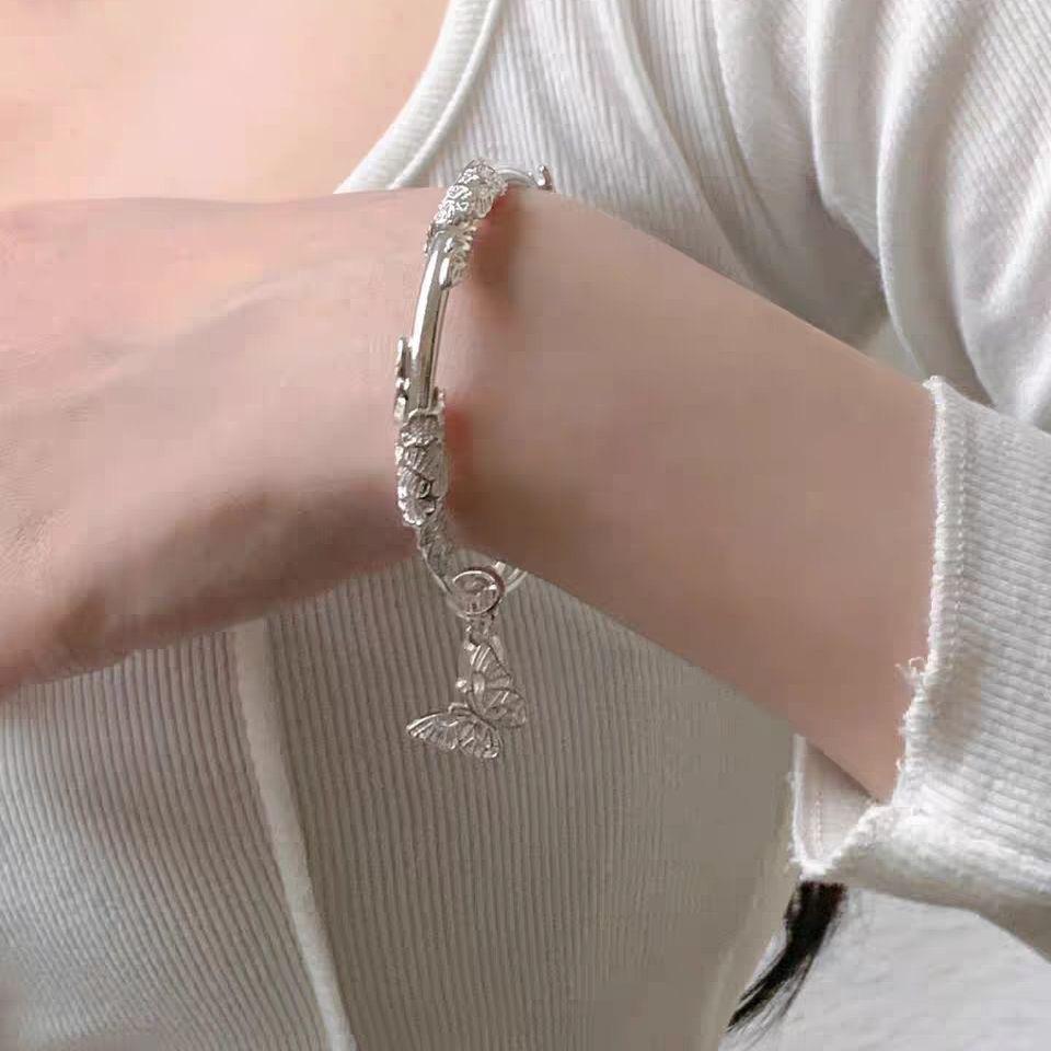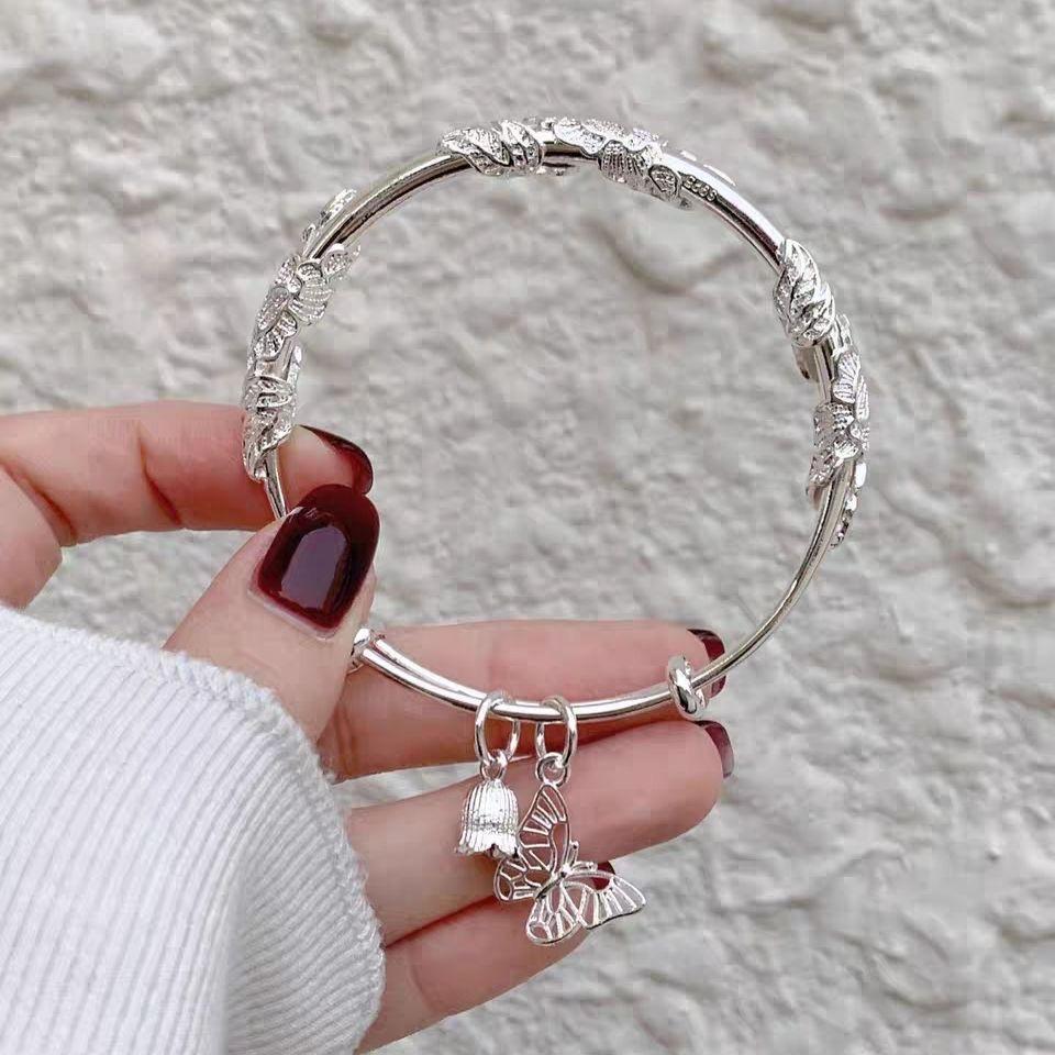 繁花似锦银手镯女实心镯子年轻款百搭手链送女友生日礼物学生闺蜜