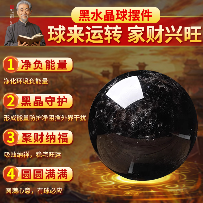 天然黑水晶球摆件黑曜石原石装饰品黄水晶白水晶粉水晶紫水晶开业