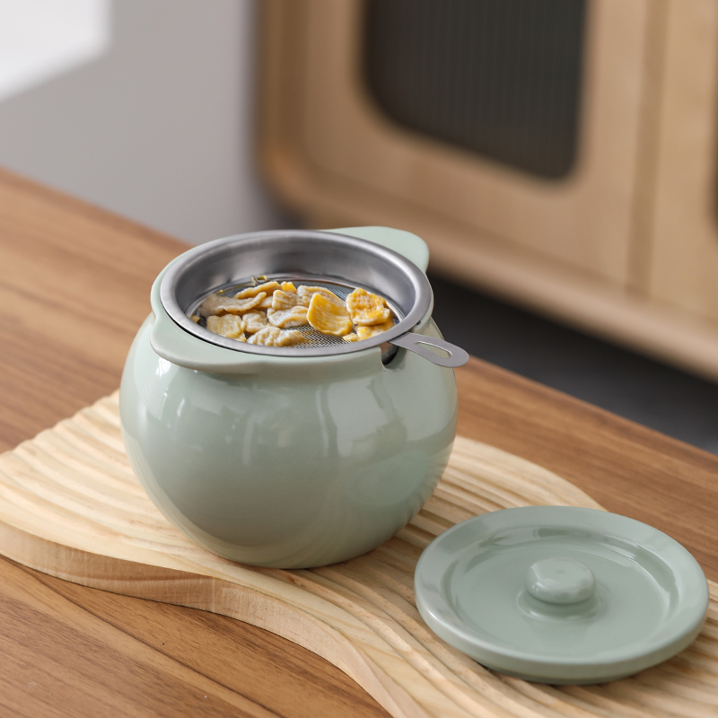 家用带盖耐高温陶瓷猪油罐厨房辣椒油罐油泼辣子专用调料盒带把手