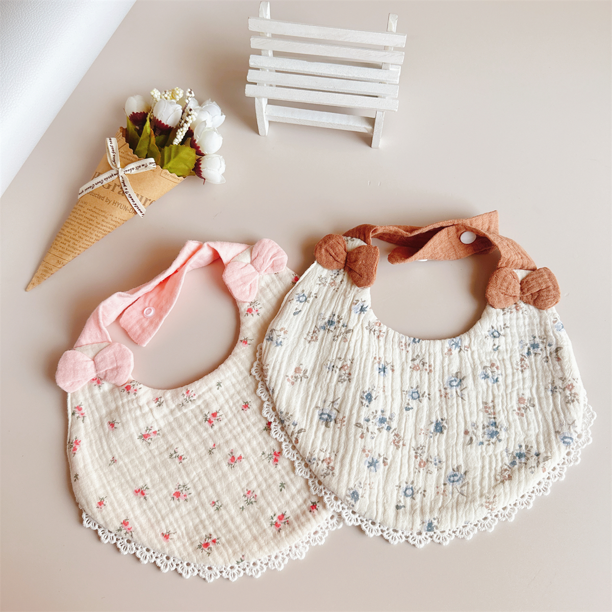 韩版ins风纯棉纱布婴儿口水巾宝宝围嘴公主风花边口水兜吸水柔软
