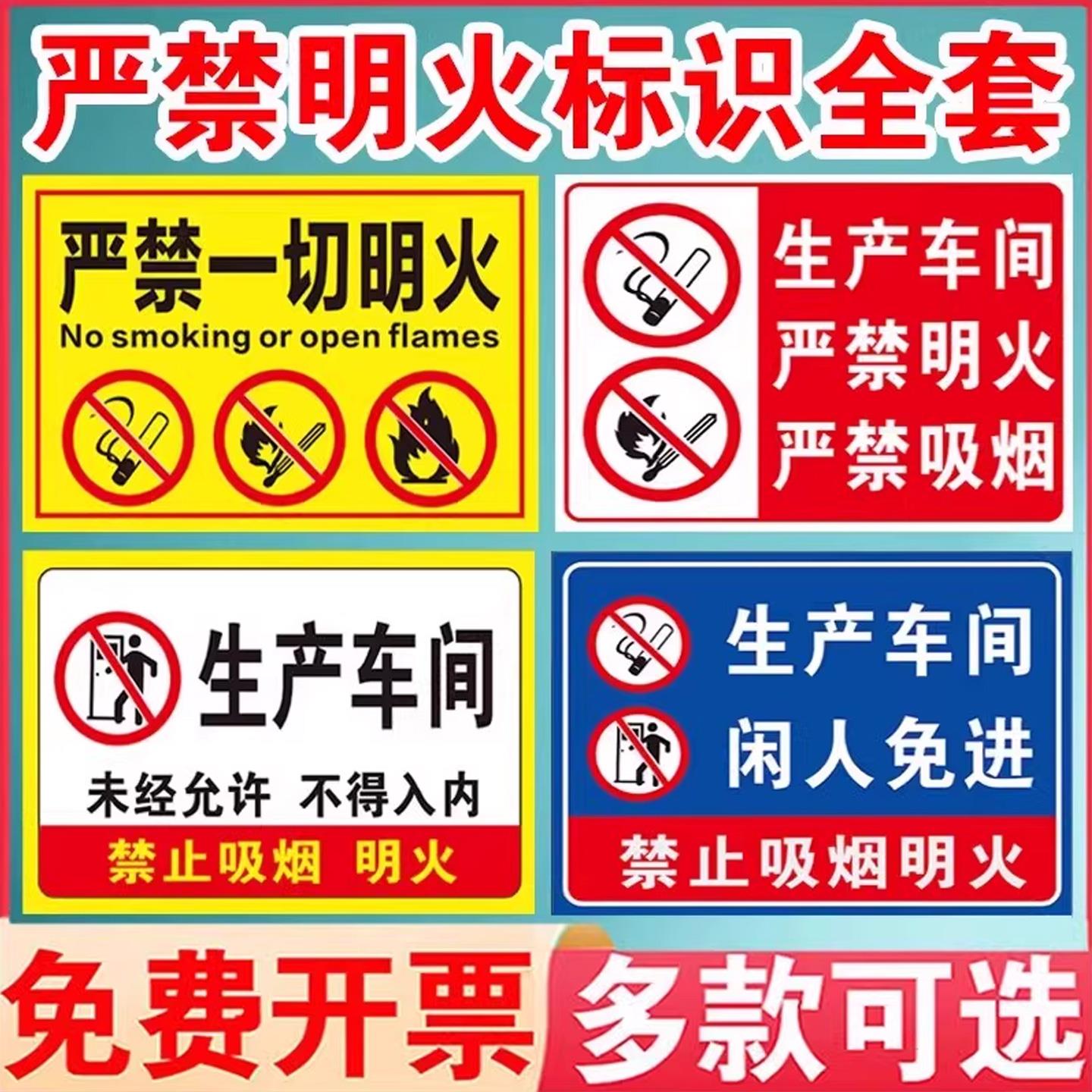 严禁明火安全警示牌禁止烟火标识牌工厂生产车间仓库请勿吸烟标志牌防火标语标牌进入库房机房灭火器有电厂区