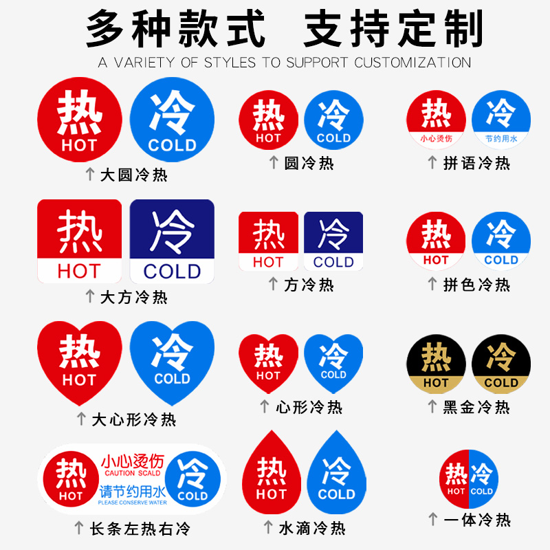 水龙头冷热水标识贴家用防水高级酒店卫生间冷热贴提示贴热水器花洒冷水热水迷你小号标签贴纸开关字贴标志贴