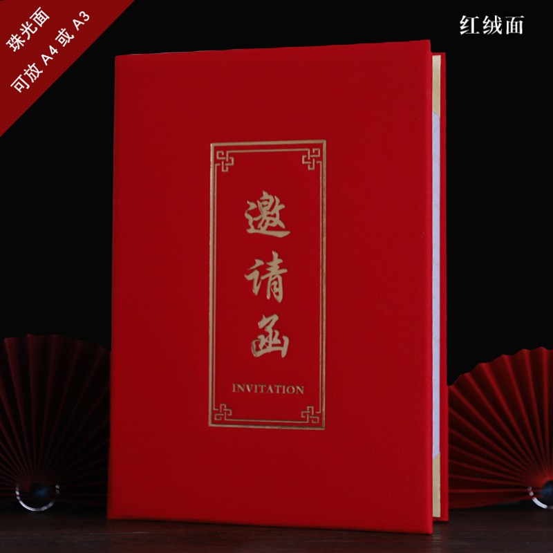 珠光竖版A4邀请函邀请卡商务庆典升学A3大号谢师宴结婚高档请柬红
