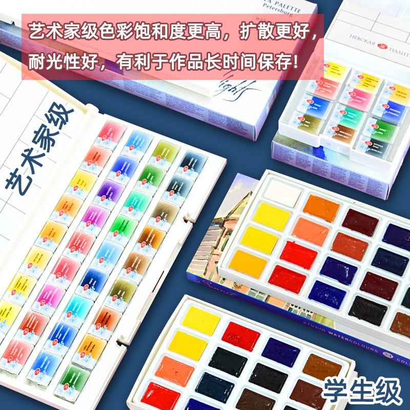 俄罗斯进口白夜牌固体水彩颜料学院级24色铁盒分装艺术家36色套装