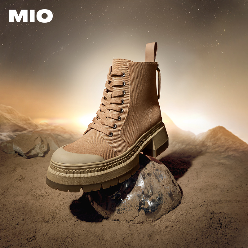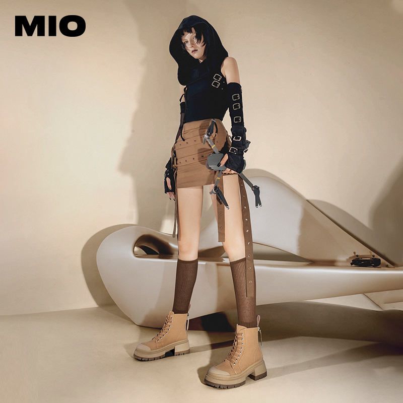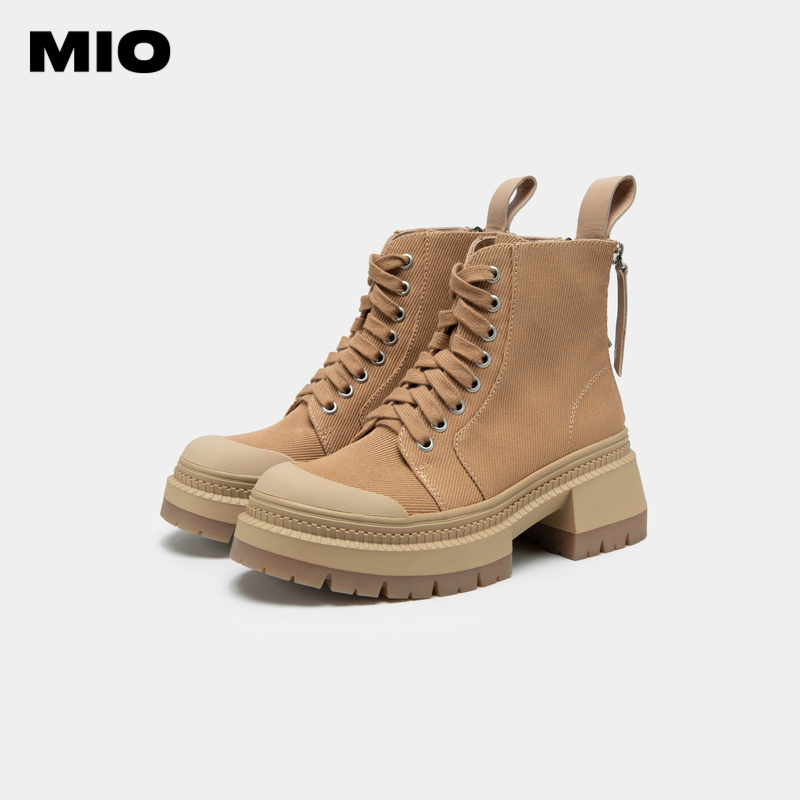 MIO米奥冬季靴子经典大黄靴厚底马丁靴系带高帮工装机车靴女靴
