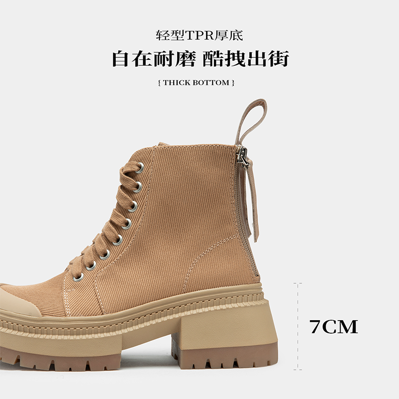 2025新款牛仔布马丁靴女厚底机车靴小个子增高短靴帆布松糕女靴子