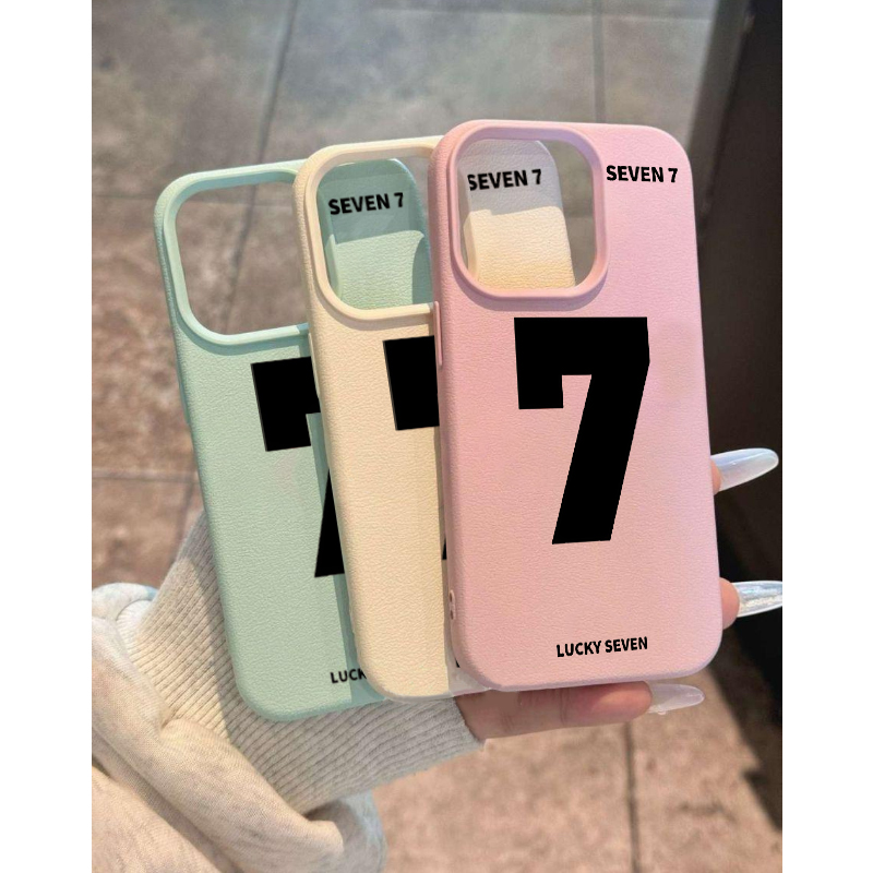 幸运数字7适用苹果15promax手机壳iPhone14女新款13皮质软壳12简约11个性创意荔枝纹15Pro防摔14pro保护套男