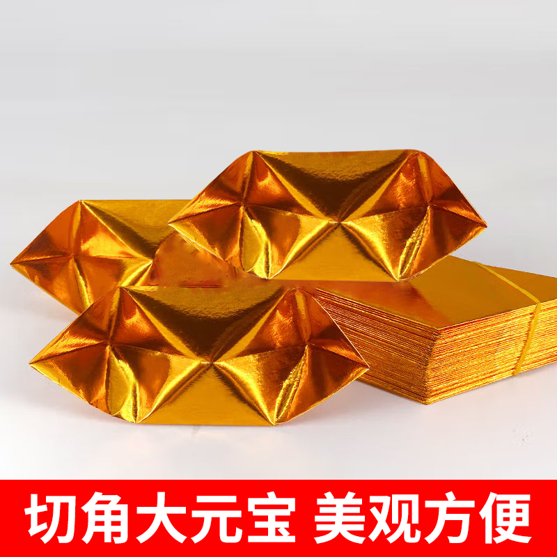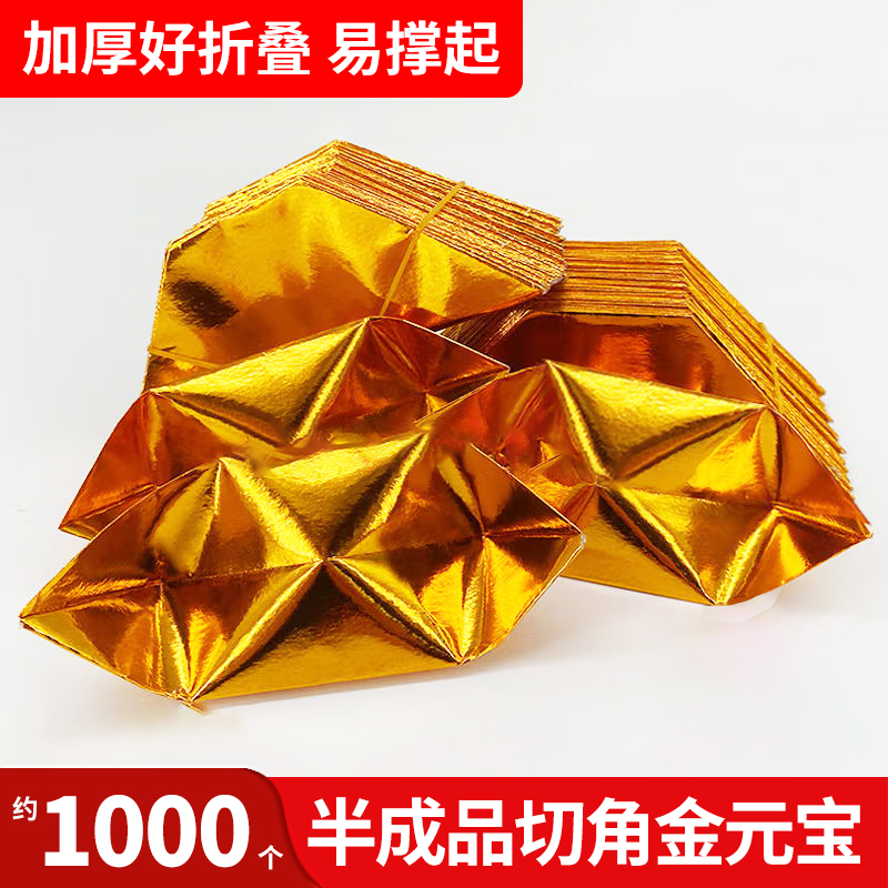 半成品元宝1000个切角金银锡箔纸加厚一等品包邮送袋手工折纸金黄金色折叠人工