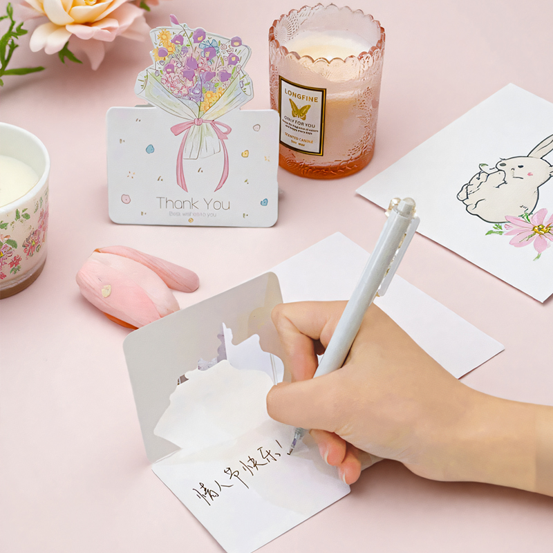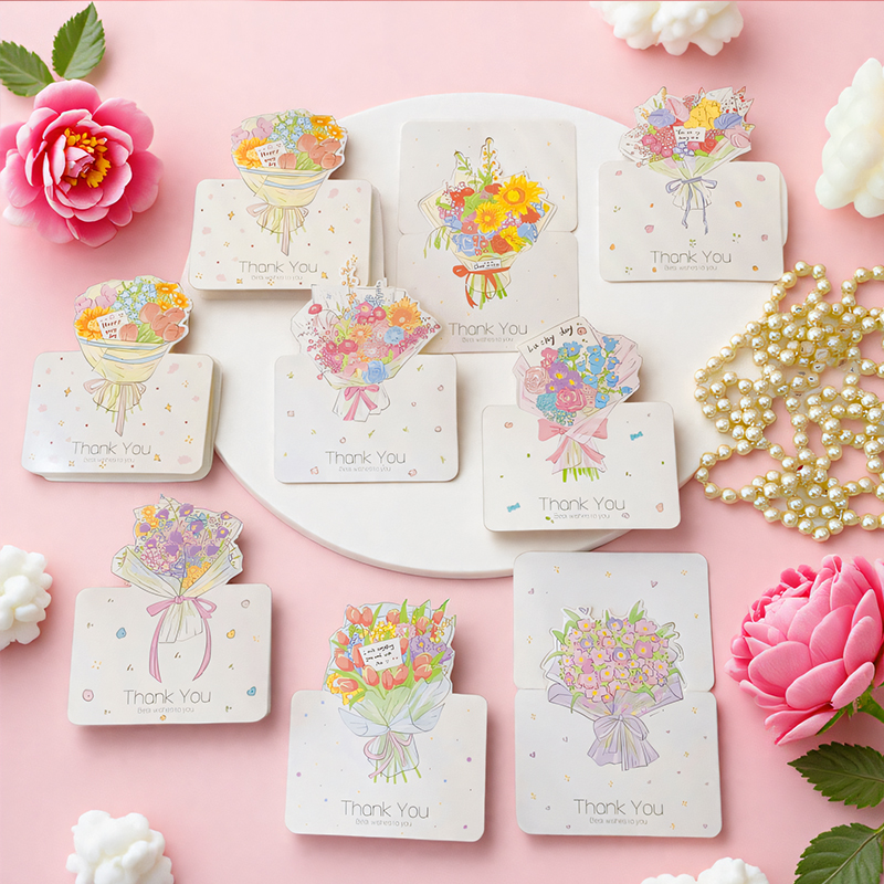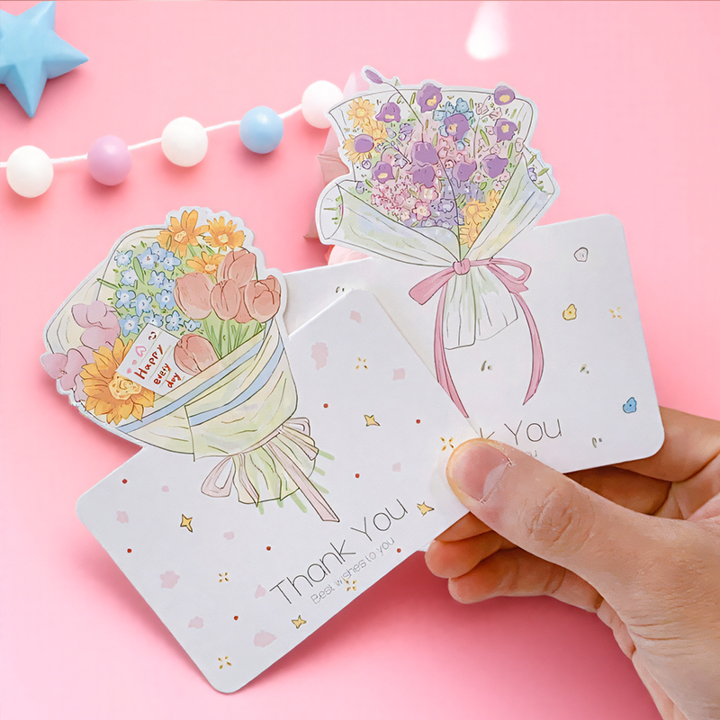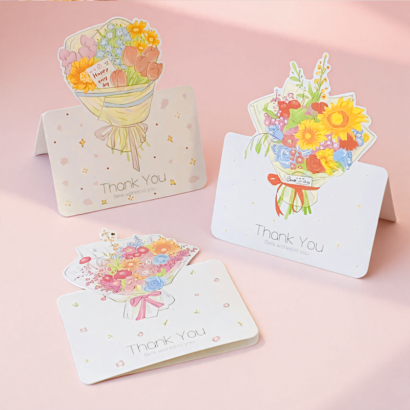 贺卡小卡片3D立体生日贺卡高级感手写信定制花店花束母亲节送妈妈祝福感谢卡礼物留言卡明信片thank you卡片