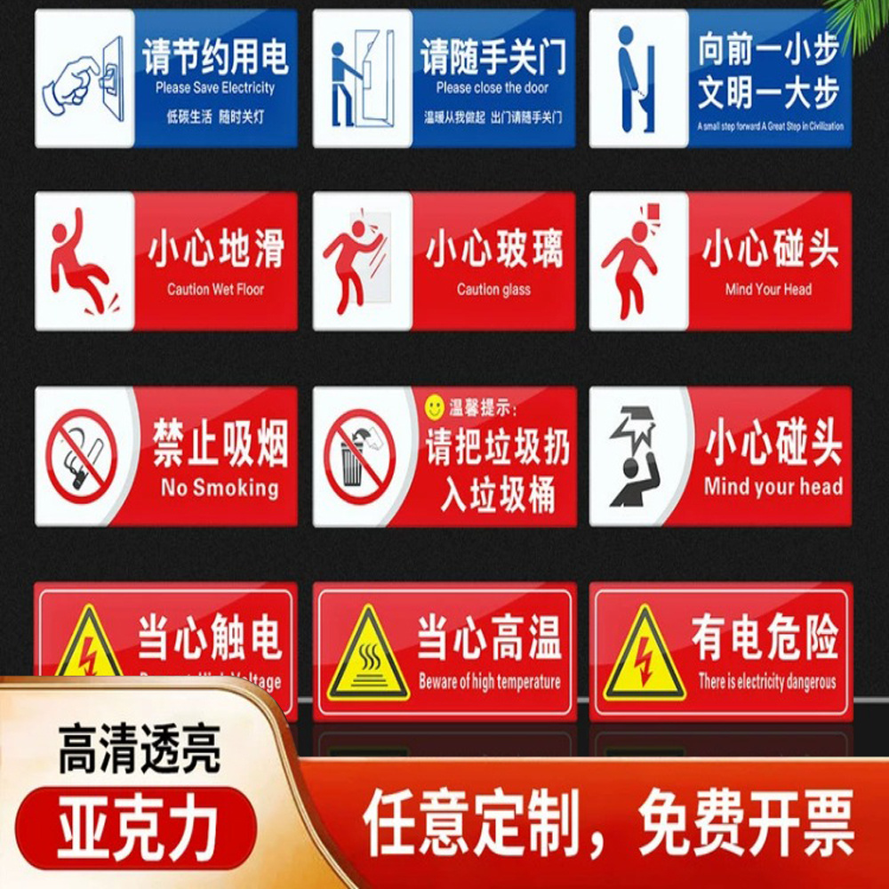 亚克力随手关水龙头标识消防通道安全出口警示标识牌安全通道疏散指示牌节约用水指示贴提示牌标志墙贴自粘