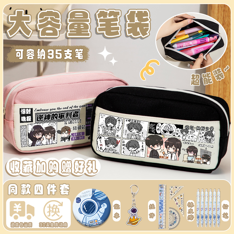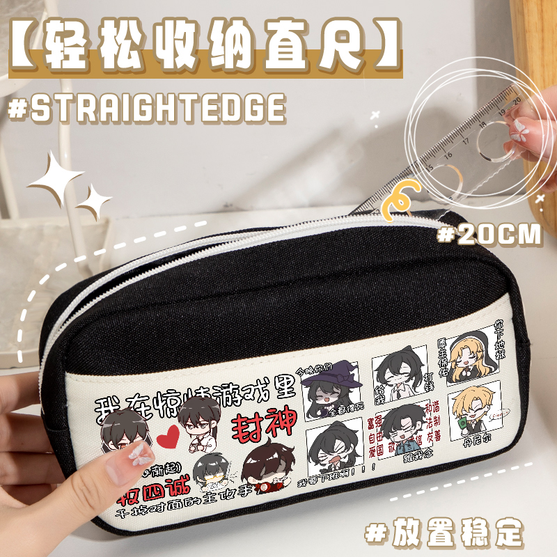 我在惊悚游戏里封神卡通男女孩中小学生专用笔袋一到六年级简约搞怪便携大容量多功能双层多隔层文具收纳袋女