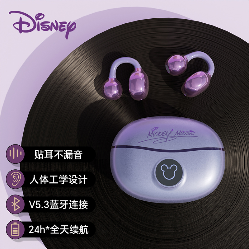不入耳更舒适!迪士尼蓝牙耳机夹耳数显高颜值高音质长续航隔音
