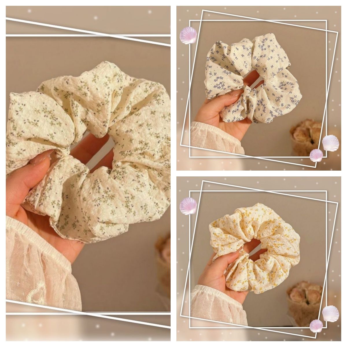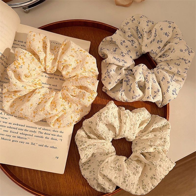 大号蓝色碎花肥肠发绳女韩系气质扎头绳发圈2024新款马尾头花皮筋