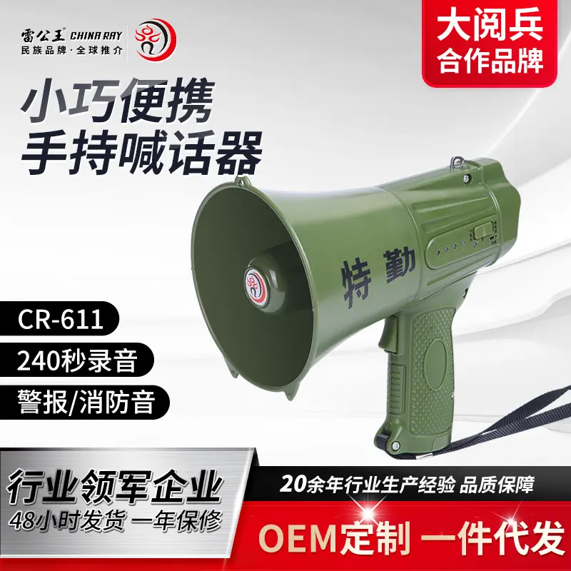 雷公王CR-611手持喊话器户外喇叭扩音叫卖器巡逻检查扩音器