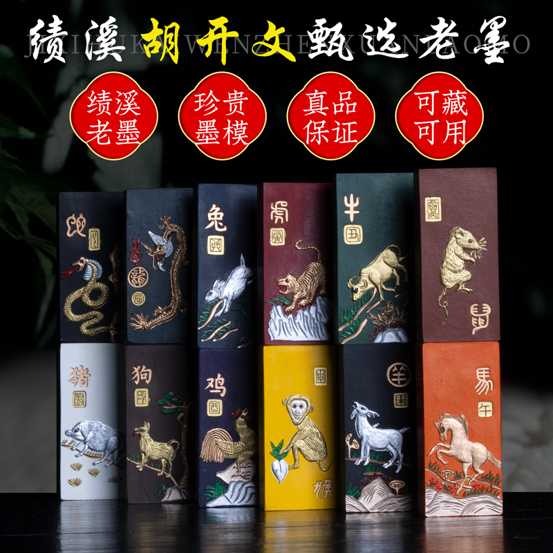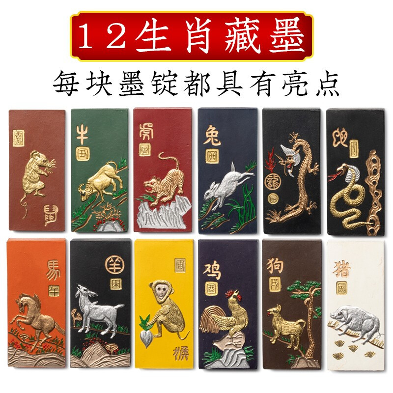 善琏湖笔墨条墨块徽墨手工墨锭松烟墨十二生肖彩墨文房四宝非遗传
