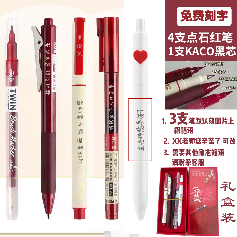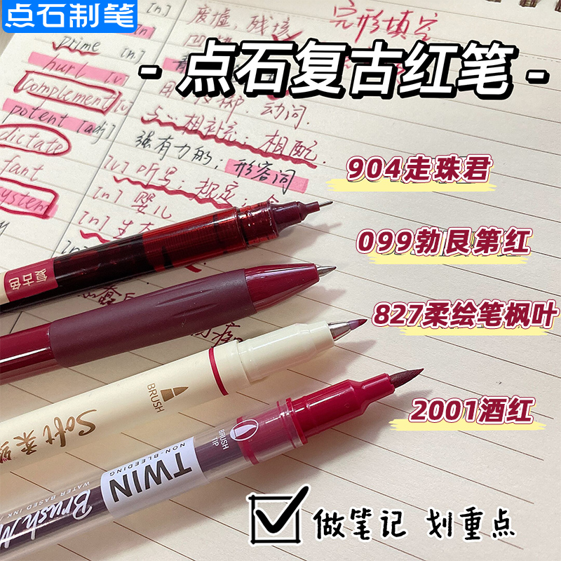 点石批改作业红笔学生复古暗红色软头笔酒红划重点水彩笔刻字logo