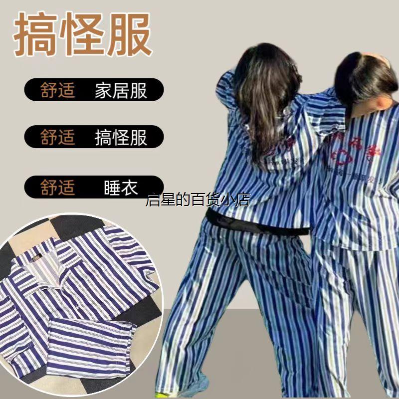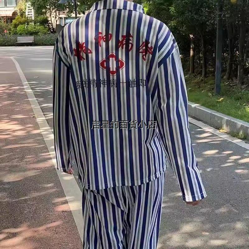 精神院病衣服睡衣条纹长袖家居服出院留念病号服装男女精神院服