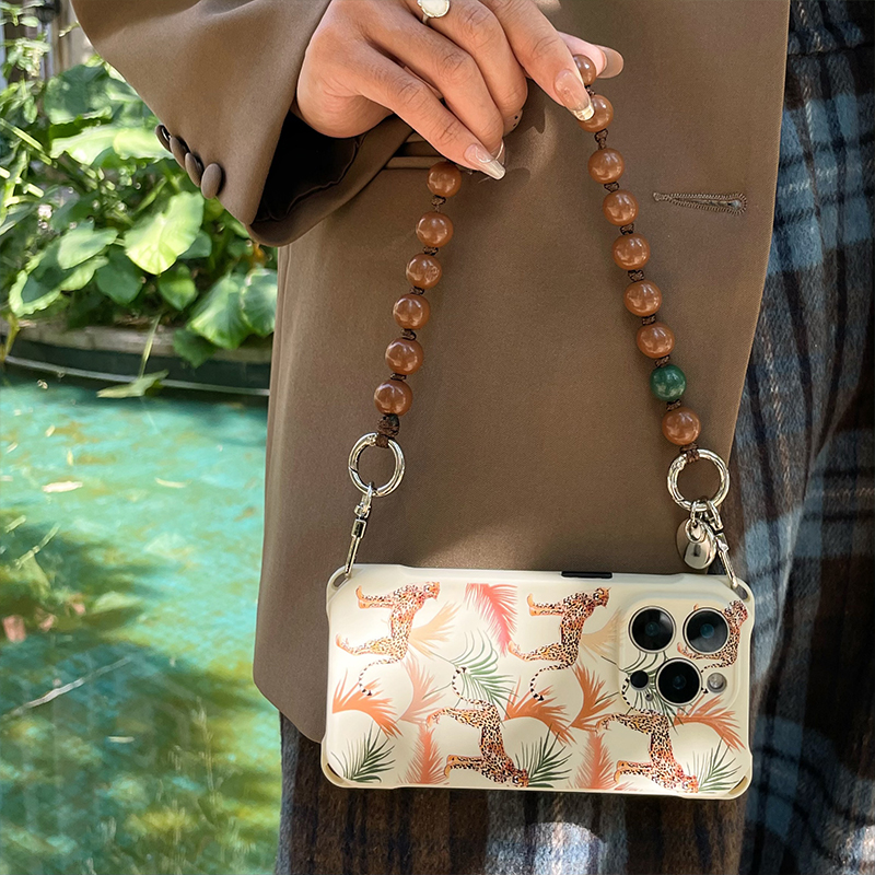 万物有灵||复古风花豹iPhone15pro手机壳手提链条木珠重工编织挂链适用华为mate60小米15荣耀200四角防摔斜挎