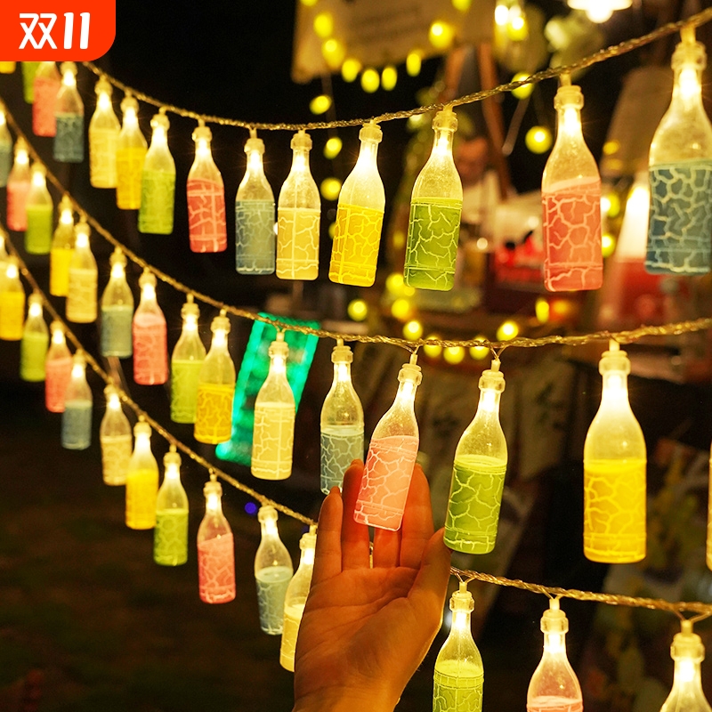 夜市摆摊氛围灯led小彩灯串网红烧烤店酒馆装饰串灯酒瓶龙虾闪灯