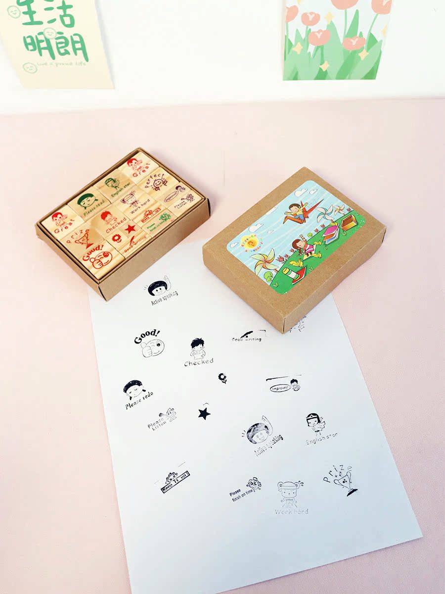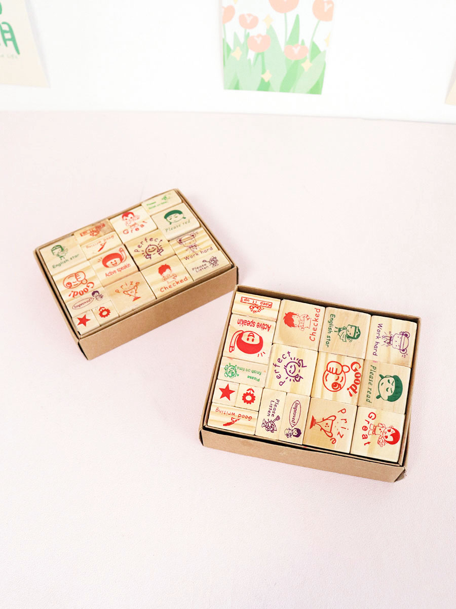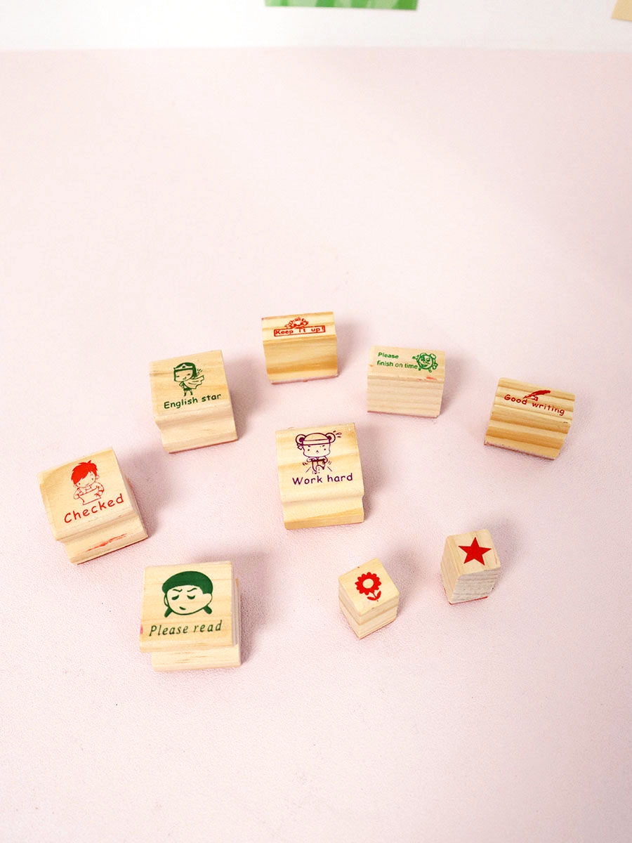 木质印章儿童奖励评语盖章教师用图案小学生鼓励可爱英语表扬教具