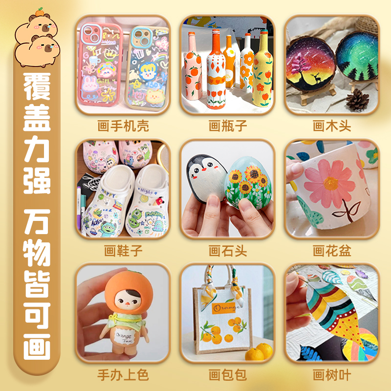 卡皮巴拉丙烯马克笔小学生美术专用画笔水彩笔不透色可叠色幼儿园儿童彩色笔套装可水洗笔芯48色36无毒药性