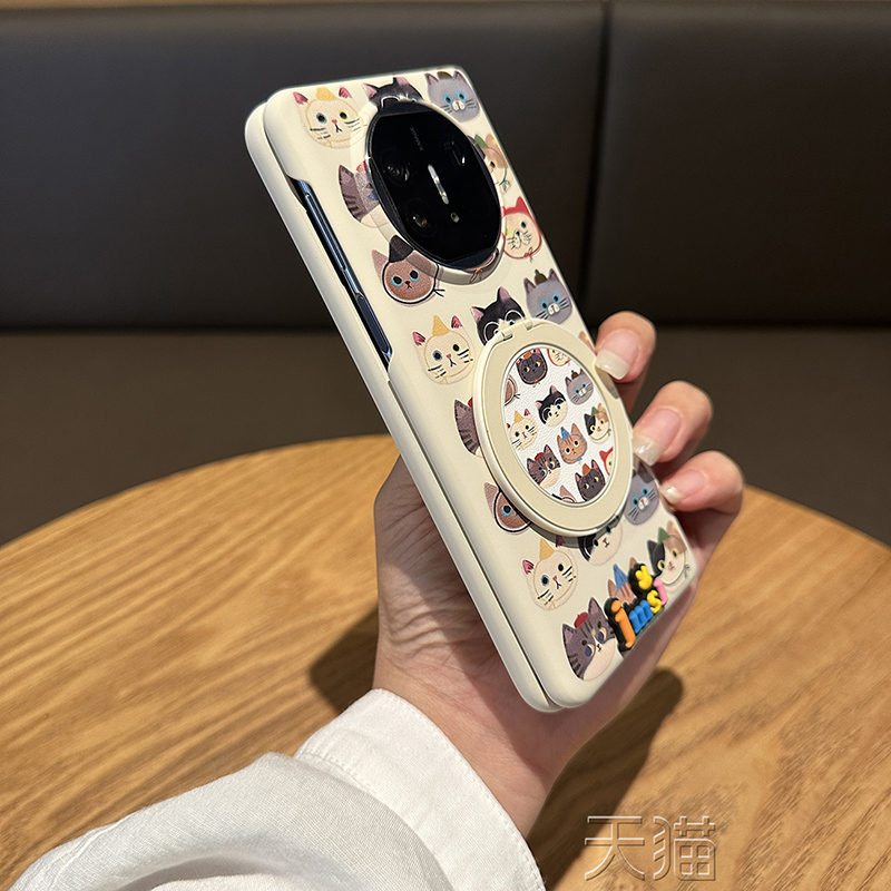 帽子猫咪适用荣耀Magic V3手机壳折叠屏卡通可爱肤感magicvs2小清新款简约清爽旋转支架V5少女保护套边框防摔