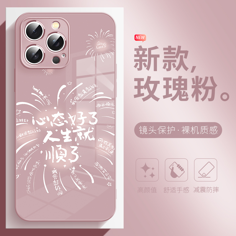 适用于苹果17promax手机壳凡事发生有利于我iphone16小众高级感15plus玻璃14pro创意文字13全包12保护套x防摔