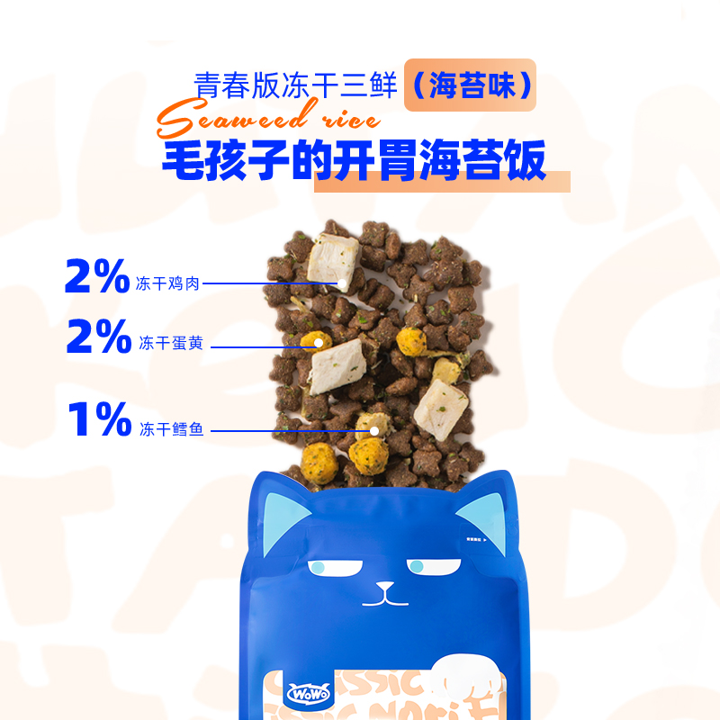 喔喔鸡肉成猫粮冻干三拼生骨肉wowo无谷主食专用10斤装送试吃囤货