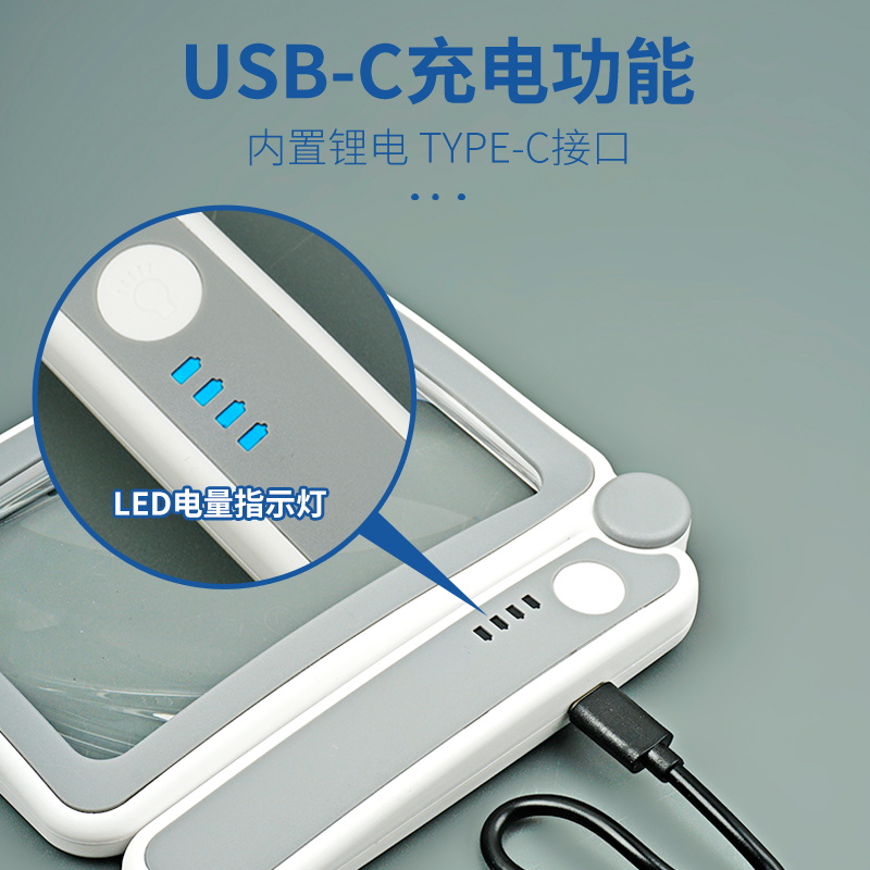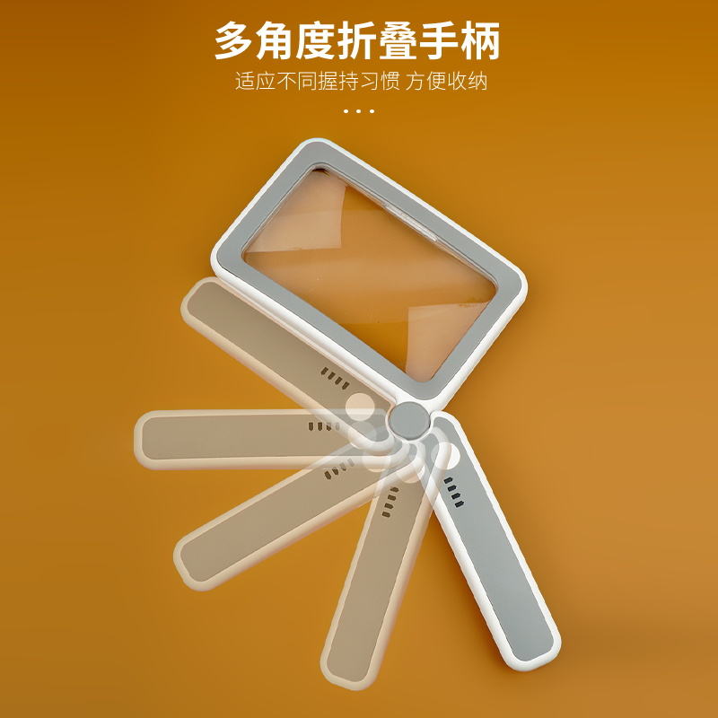 拜斯特4倍手持led灯扩大镜放大镜手机老人学生折叠手柄 USB充电学