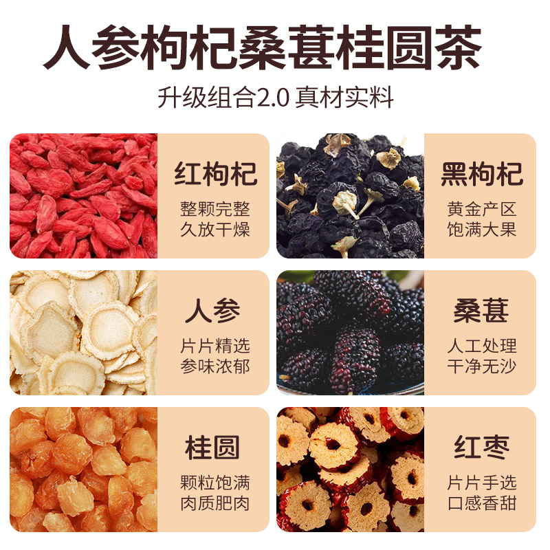 人参黑红枸杞桂圆桑葚茶红枣熬夜透支上班加班独立三角茶包恢复茶