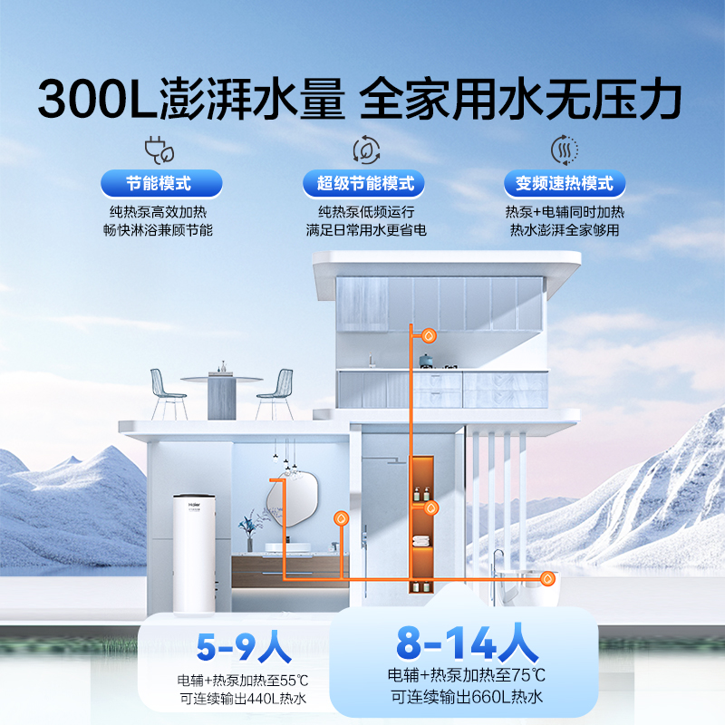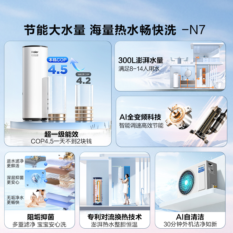 海尔空气能热水器300升家用商热泵2匹全变频节能省电大容量智能N7