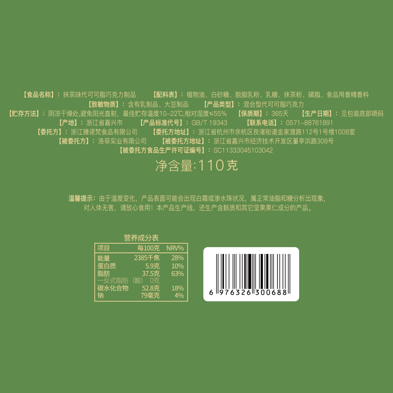 诺梵抹茶巧克力排块网红礼物爆款解馋零食糖果代可可脂休闲盒装