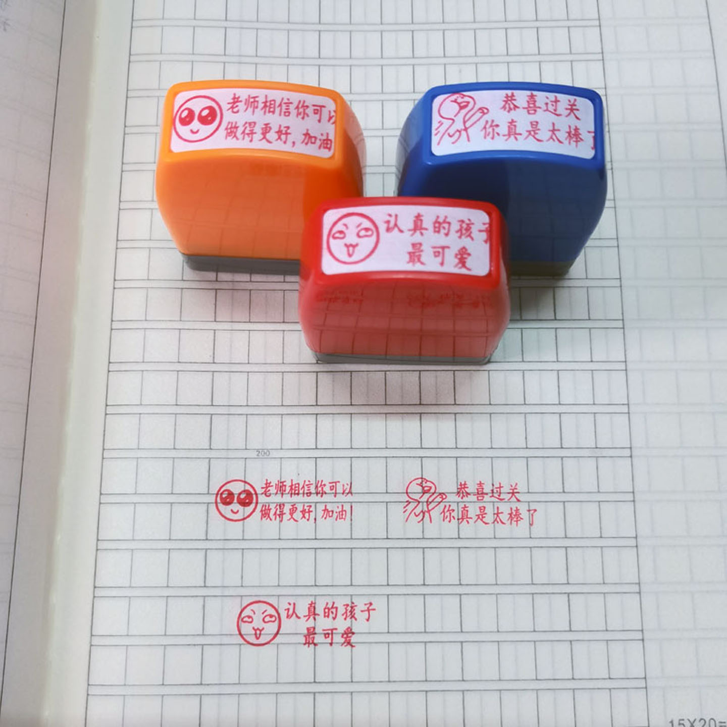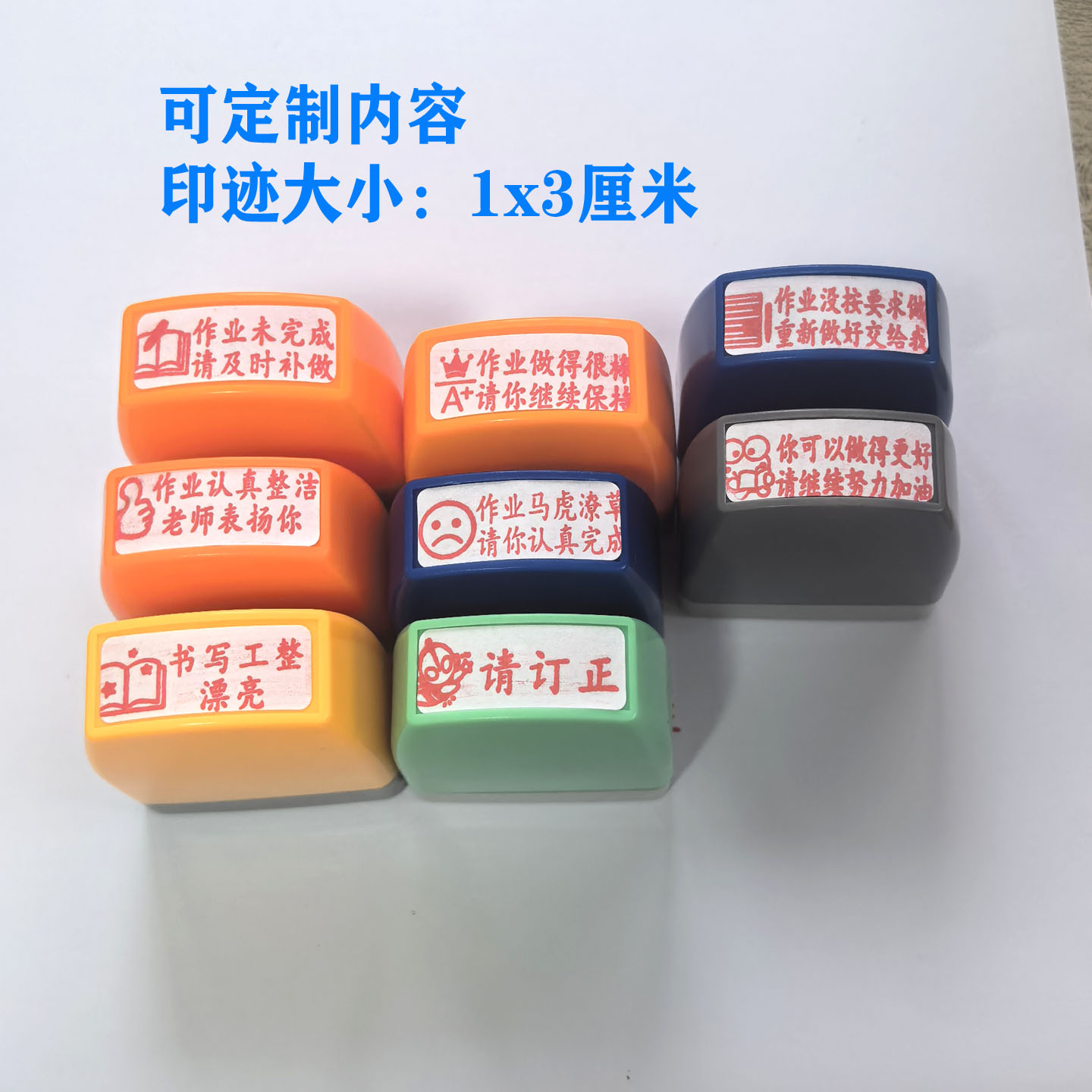 老师检查批改作业印书写整洁未完成补做修改表扬教师评语光敏印章