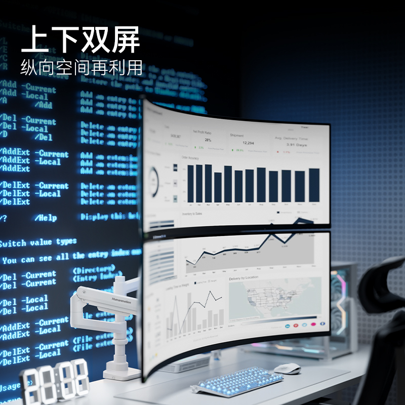 松能大承重大屏显示器支架臂电脑上下双屏升降调节增高机械臂T10