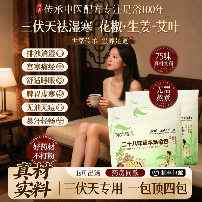左左女三伏天泡脚药包湿气助睡眠发汗艾叶生姜祛寒足浴包去男女士