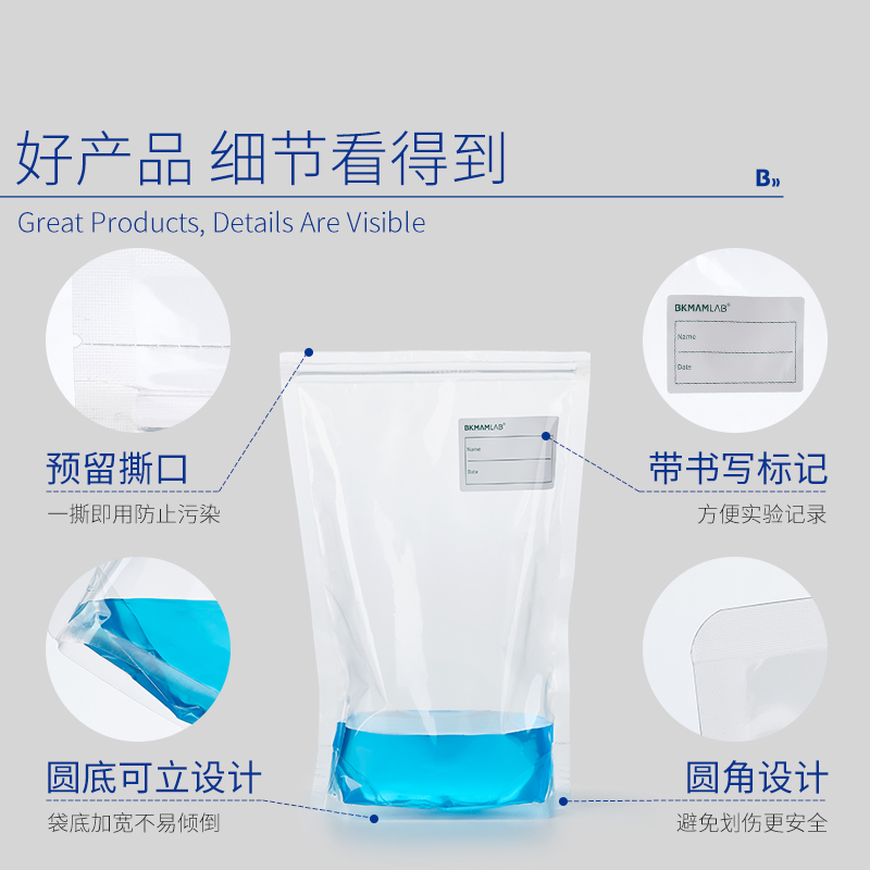 比克曼生物无菌均质袋一次性采样袋实验室可立带压条滤膜密封袋