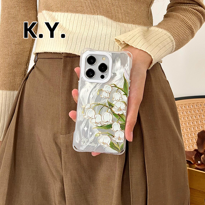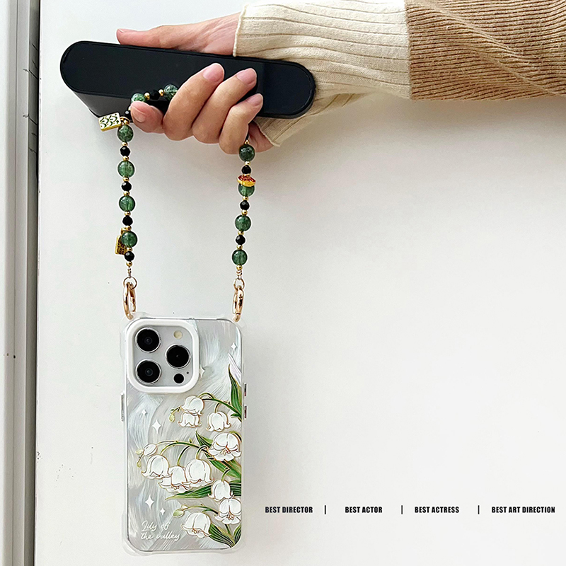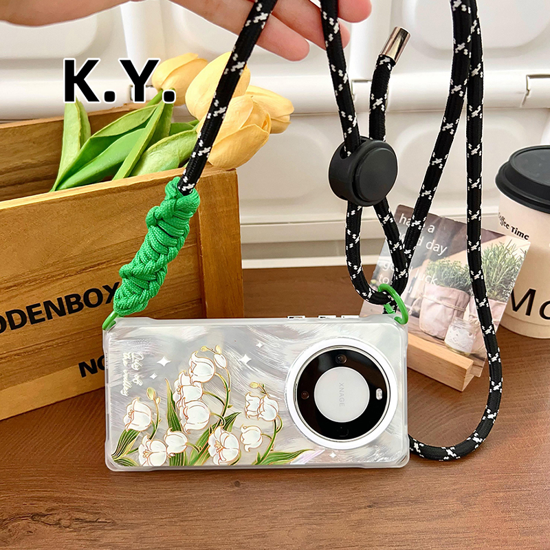 白铃兰手机壳带挂绳适用于iPhone15/16pro华为mate60/70手提斜挎背带小米14四角开孔findx7防摔vivox200u硬壳