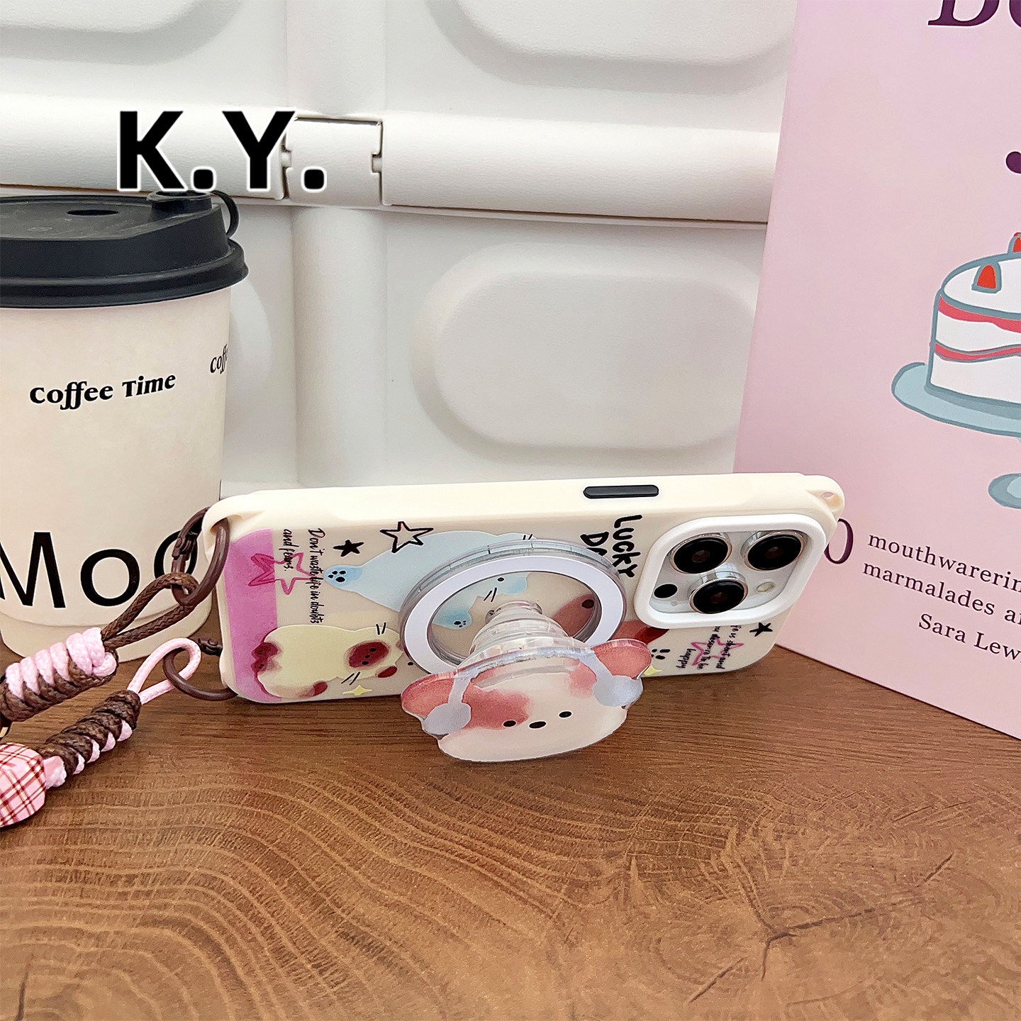 可爱小狗磁吸支架手机壳带挂绳适用于苹果17/16Pro小米15ULTRA手提斜挎Mate60Pro四角防摔PURA80卡通保护套女