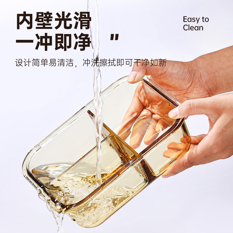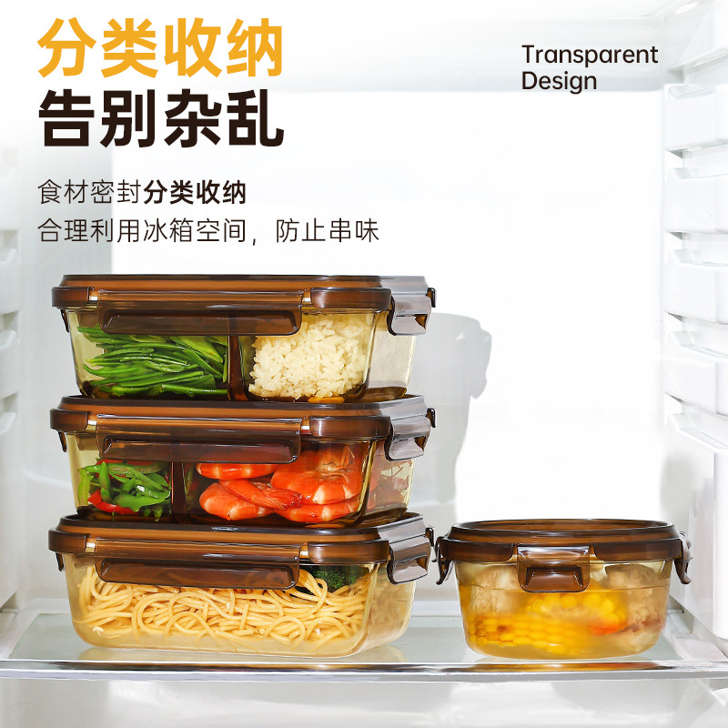 琥珀圆玻璃饭盒可微波炉加热专用上班族带盖餐盒便当碗分隔保鲜盒