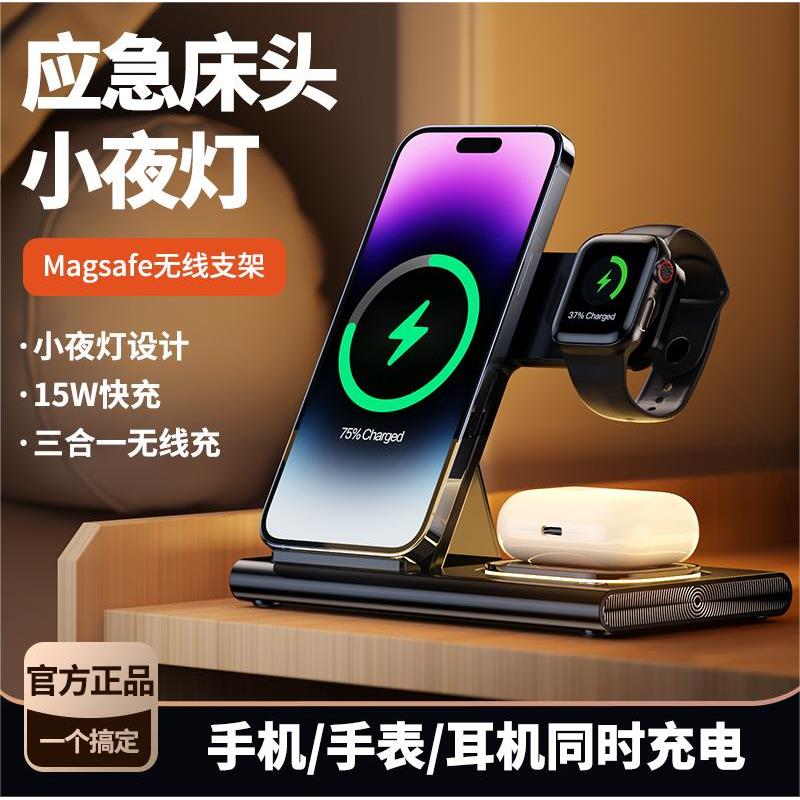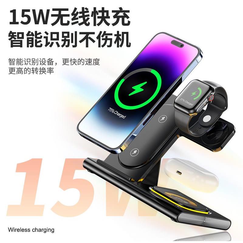 4合1双线圈15W无线充 手机+手表+耳机+小夜灯折叠式多功能无线充电器