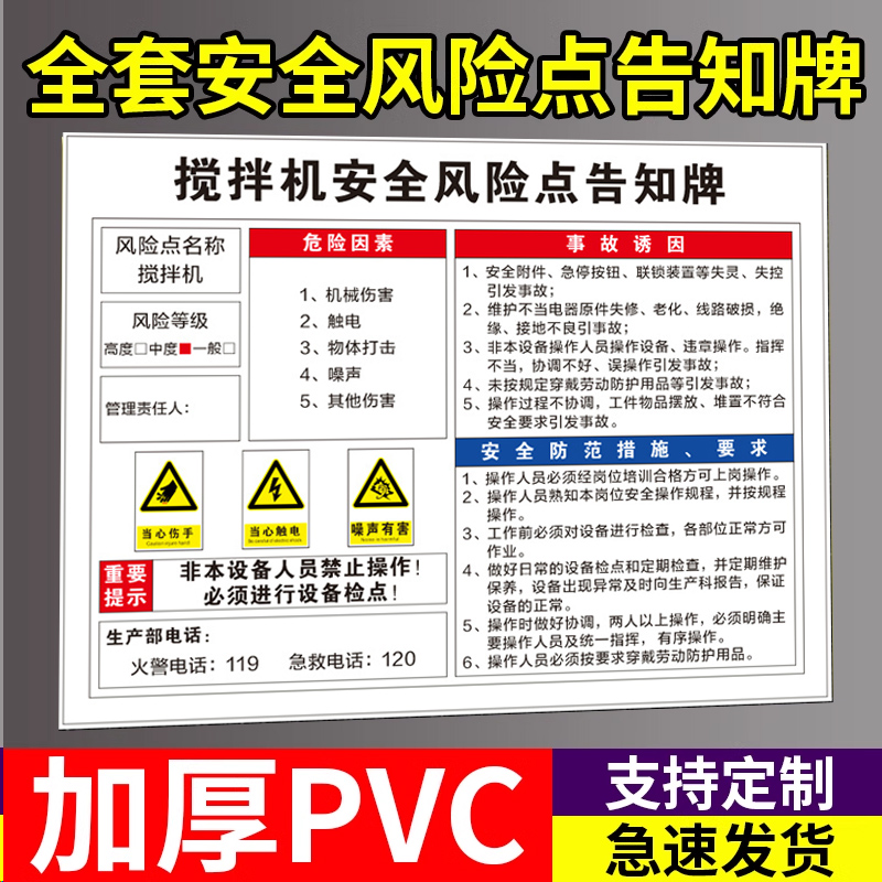 搅拌机风险点告知牌安全管理及风险防范风险评估车间告知卡危险源防范措施铝板亚克力标识牌提示牌告示牌