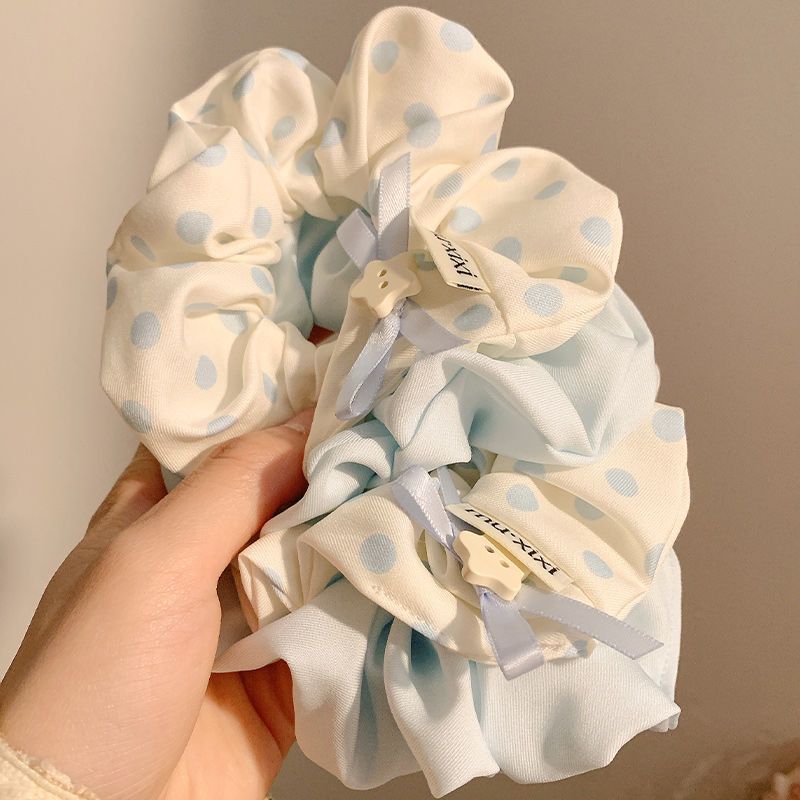 韩系蓝色波点大肠发圈女高级感慵懒风扎头发低马尾发饰简约头绳