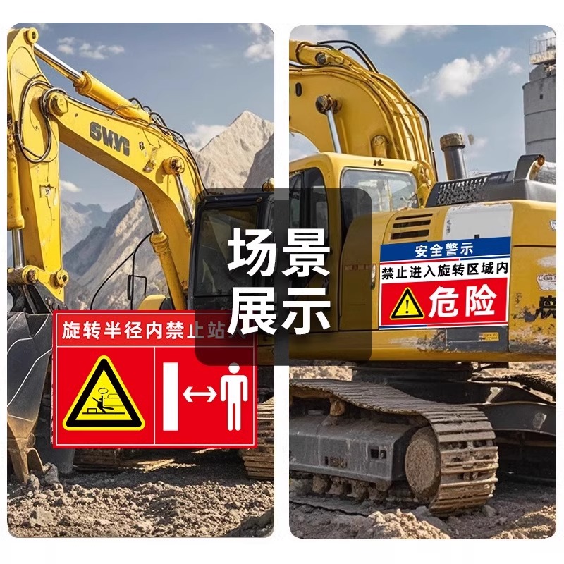 挖机警示贴夜光纸标识牌作业时禁止靠近警示牌夜光保持距离安全告示牌严禁站人安全标志牌施工现场吊车危险贴