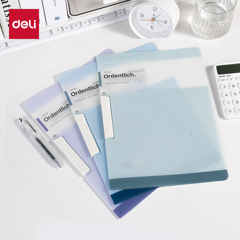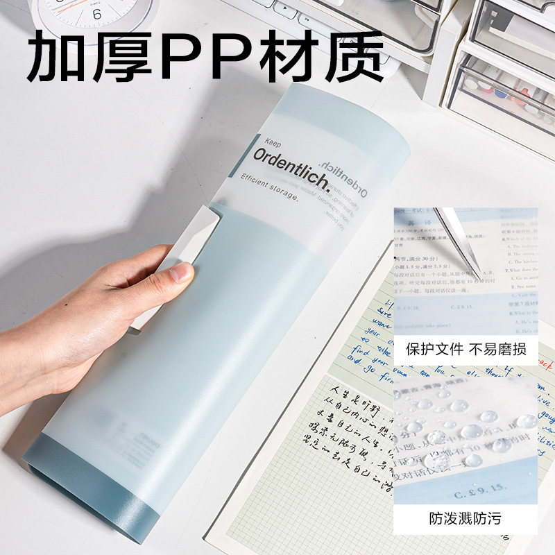 得力侧开式文件资料整理夹旋转报告夹a4文件夹办公用品活页资料夹学生用试卷夹书夹科目分类试卷收纳夹莫兰迪