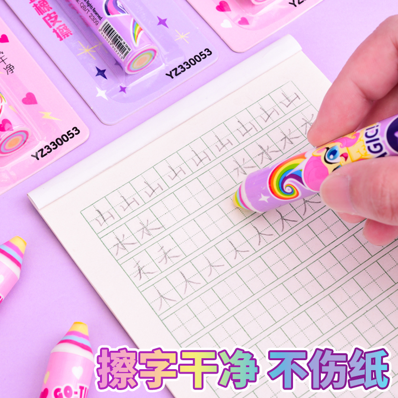 正版小马宝莉彩虹橡皮擦笔式小学生用高颜值少屑擦得干净不易留痕儿童卡通可爱铅笔橡皮擦学习用品奖励礼品
