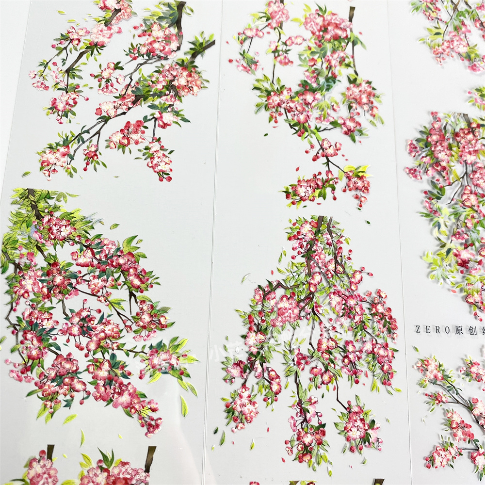 手帐分装胶带垂丝海棠zero树枝红花造景古风PET素材账流麻diy贴纸