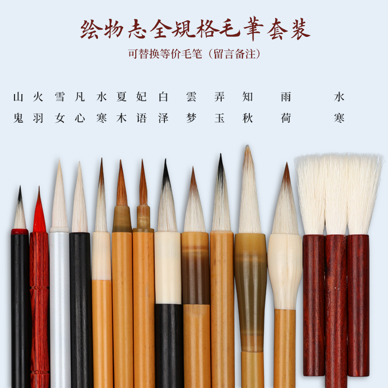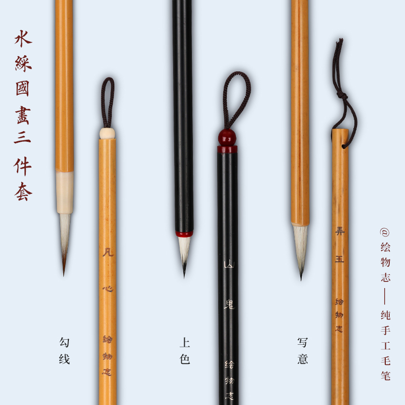 绘物志水彩笔 国画毛笔山鬼 凡心 弄玉 白泽 小楷上色勾线笔兼毫毛可水洗美术生花鸟山水绘画套装 正品 包邮