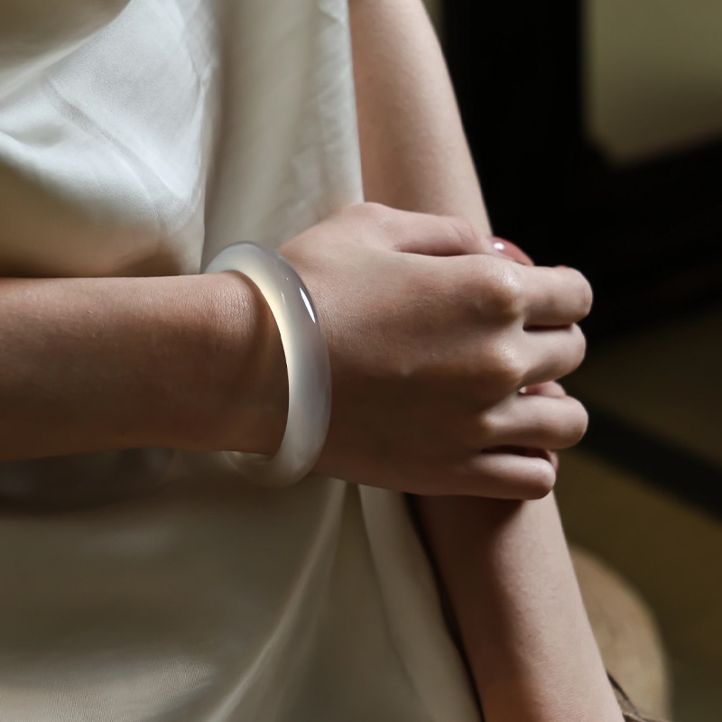 纯天然玛瑙手镯白月光玉镯女款冰种玉髓高冰透原色荔枝冻正品礼物