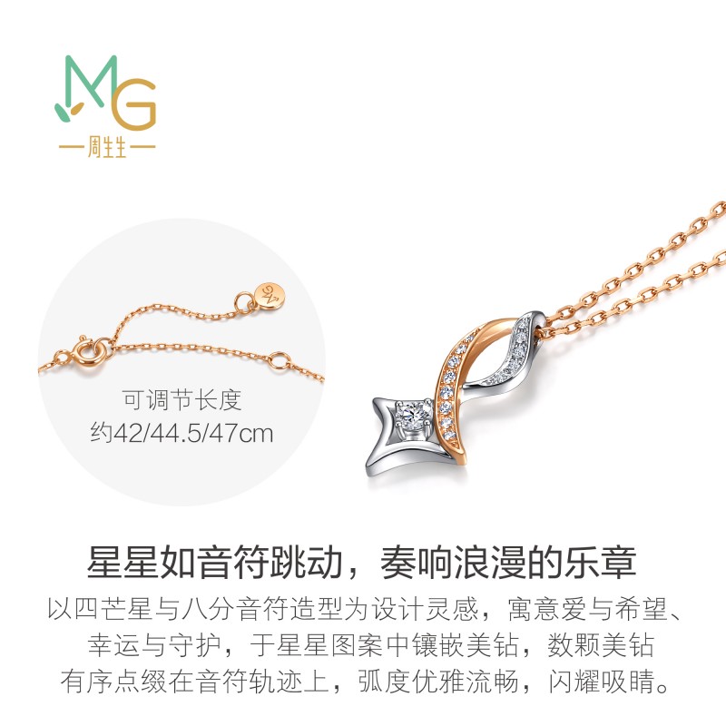 周生生18K白红分色黄金倾星系列倾星系列星夜音符钻石项链95176N